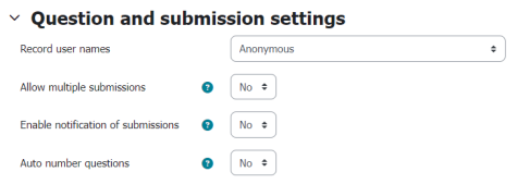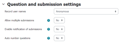 In the “Question and submission settings”, you can choose whether the survey should be anonymous.