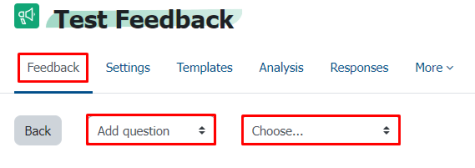 After creating the feedback activity, you can add questions by navigating to “Edit questions” within the feedback.