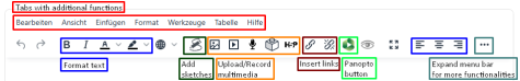 By default, Moodle uses the TinyMCE text editor for writing text. The editor functions similarly to Word or LibreOffice and offers a variety of options for formatting text.