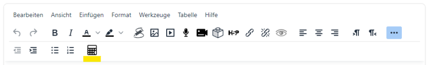 Open the equation editor in the text editor via the calculator symbol (“Equation editor”, see picture “Open equation editor”).