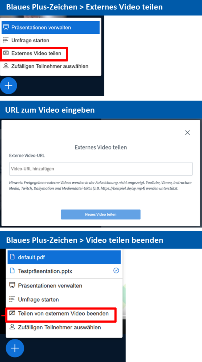 - Gruppenräume (Breakout-Räume) werden in eigenen neuen Browser-Tabs geöffnet.